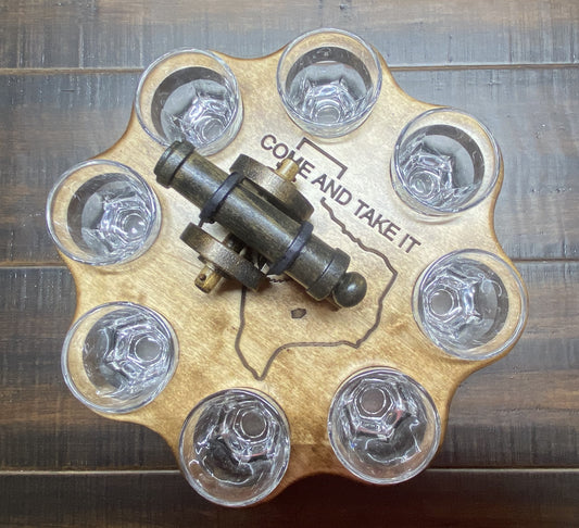 Shot Glass Whirligig, "Come and Take it"